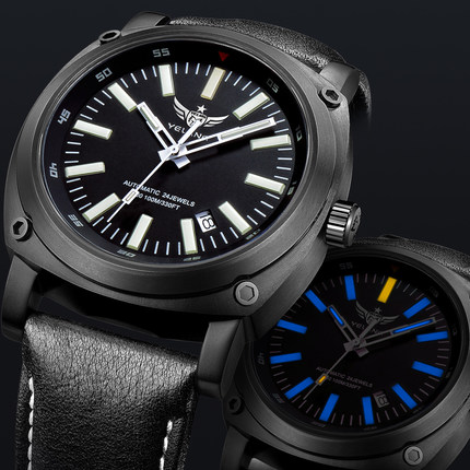 1分钟前野狼手表男H3自发光全自动机械表 - 幻影黑-黑色皮带款-蓝光